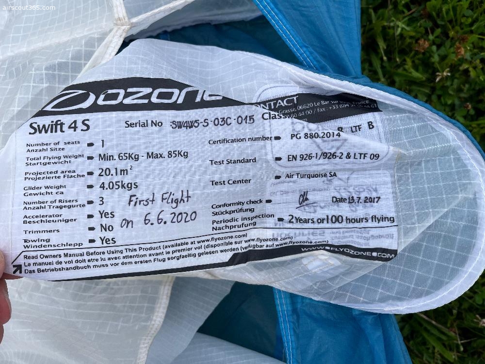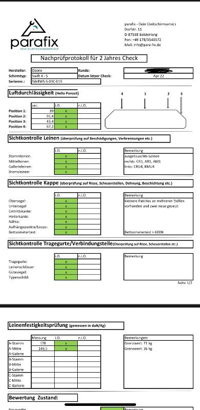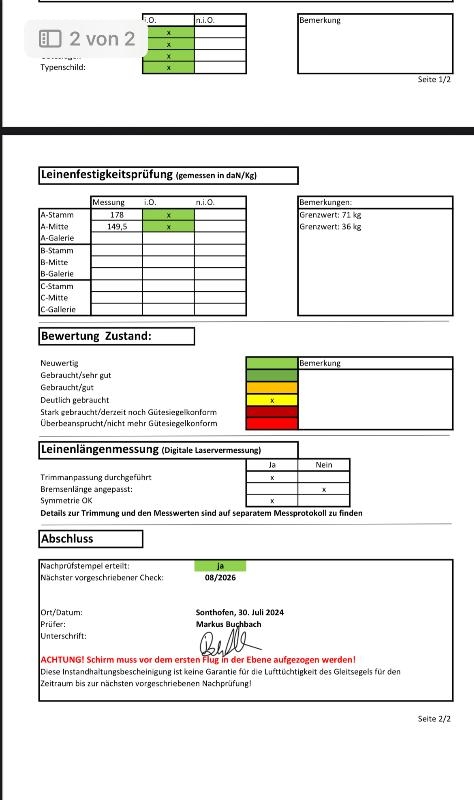 Verkaufe einen Swift 4 in Größe S (65-85kg), der nur für 2 Tage an der Düne in meinem Besitz war. Der Schirm hat einen Check bis 8/26 und fliegt prima. Alle relevanten Daten könnt Ihr dem Checkprotokoll entnehmen.Der Schirm kann in Endingen am Kaiserstuhl angeschaut und abgeholt werden. Versand gegen Vorkasse in der EU möglich.