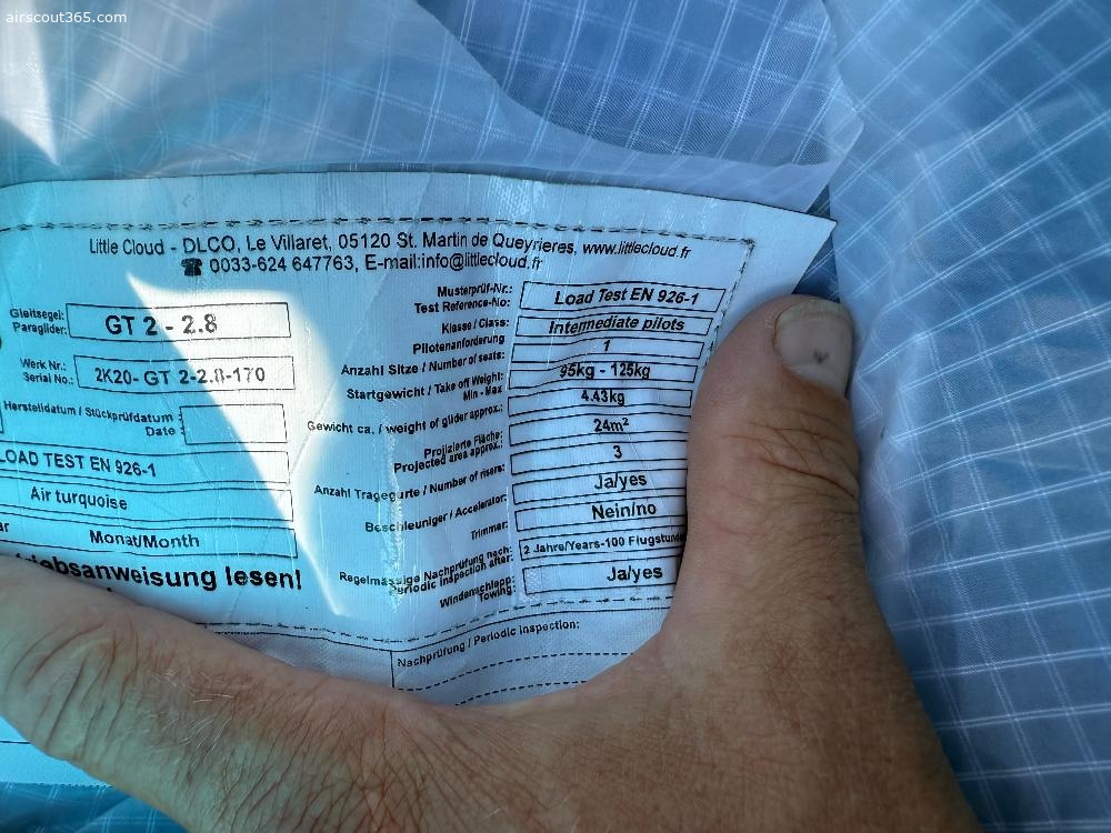 Der Schirm hat nur wenige Stunden drauf. Check bis 02/26 — seit dem letzten Check nur einen Flug gemacht. Checkresultat : Neuwertig . Sehr leichter und spaßiger LOW Level B Schirm. Gewicht liegt bei 4,3 kg.Könnte auch mit Tragegurten mit Trimmsystem erworben werden. Ist auch mit den Little Cloud Kiteriser kompartibel.