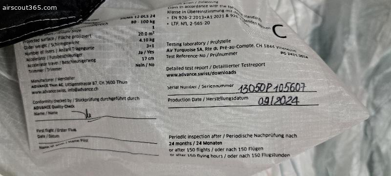 Frisch gecheckter SIGMA DLS 24 Spectra , bj. 9. 24. 25 Flüge. Keine 30 Stunden airtime. Zustand -Neuwertig . Inc. Zellenpacksack von Advance