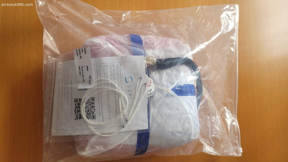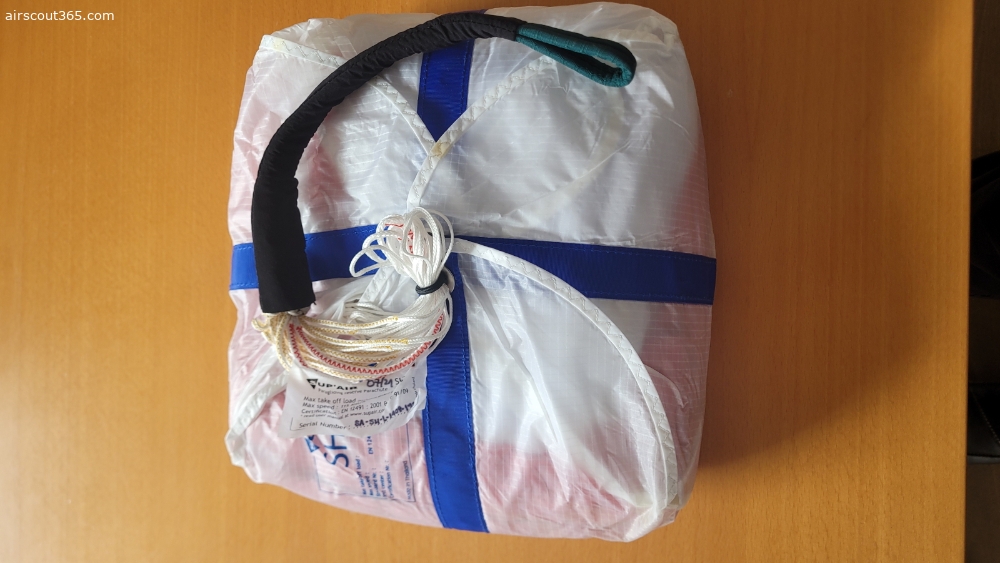 Der Retter war in meinem Drittgurtzeug Supair Strike 2 eingebaut, dass ich nur 2 mal geflogen bin und ist daher in einem neuwertigem Zustand.